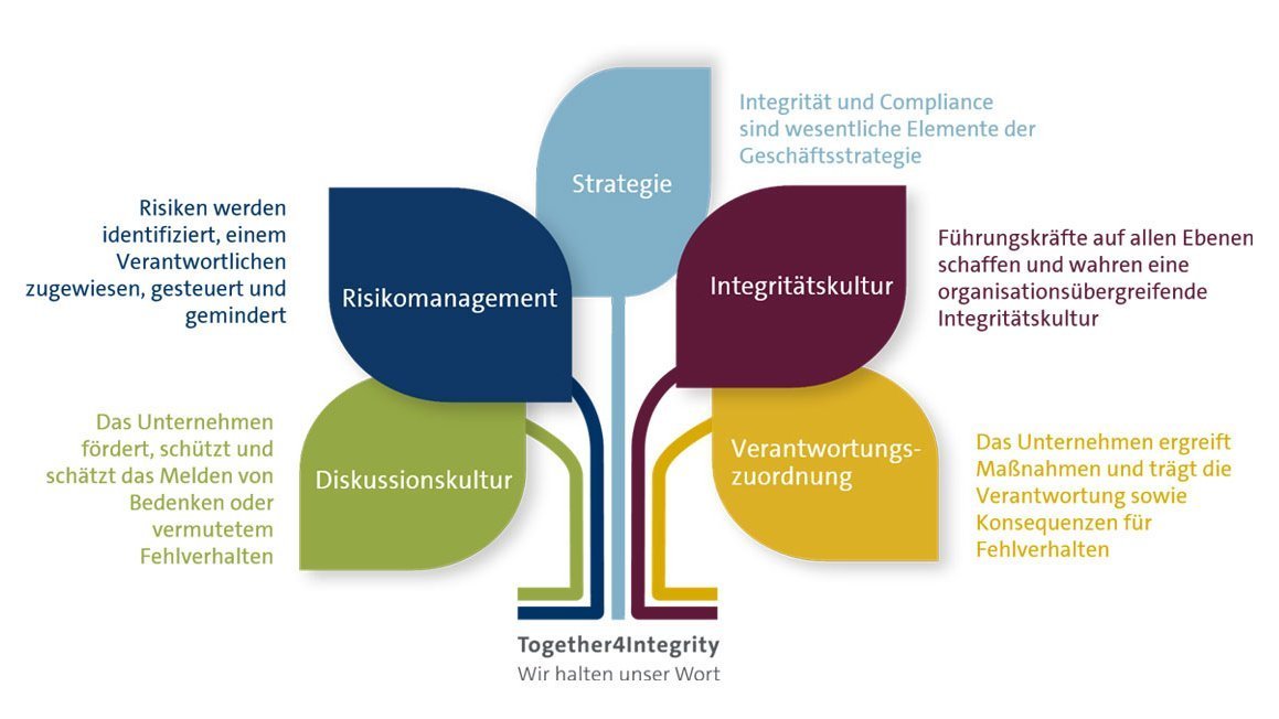 Számunkra, hogy megéljük az integritást azt jelenti, hogy szakmai környezetünkben saját meggyőződésünkből helyesen cselekszünk. Ragaszkodunk a vállalati alapelveinkhez, az azokban rögzített etikai elvekhez és a szabályoknak megfelelően viselkedünk bármilyen gazdasági és társadalmi nyomástól függetlenül.